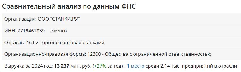 Компания STANKI.RU заняла первое место в рейтинге станкоторговых компаний России за 2024 год — информацию публикует сайт Test Firm.