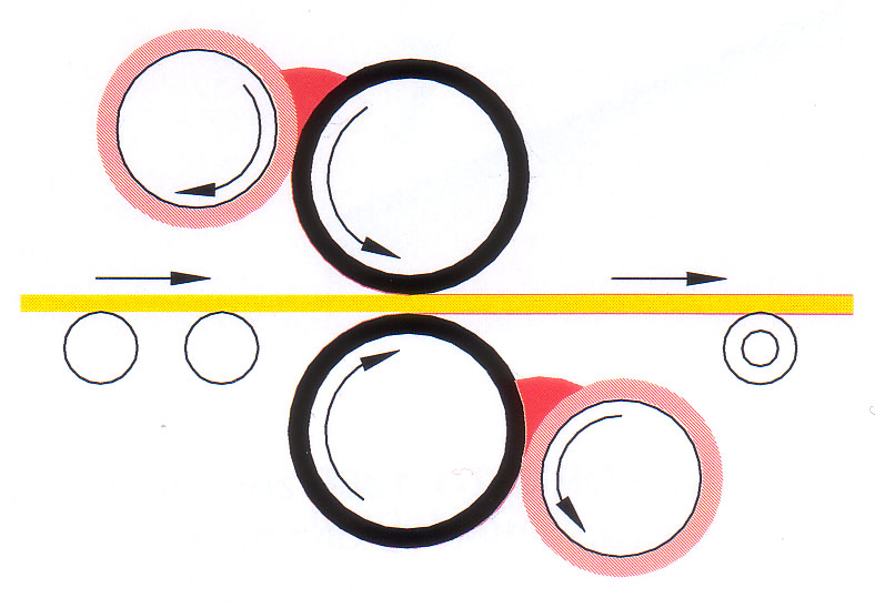 Дозирование клея осуществляется с помощью специального вала, поверхность которого соприкасается с наносящим валом, образуя клеевую ванну.